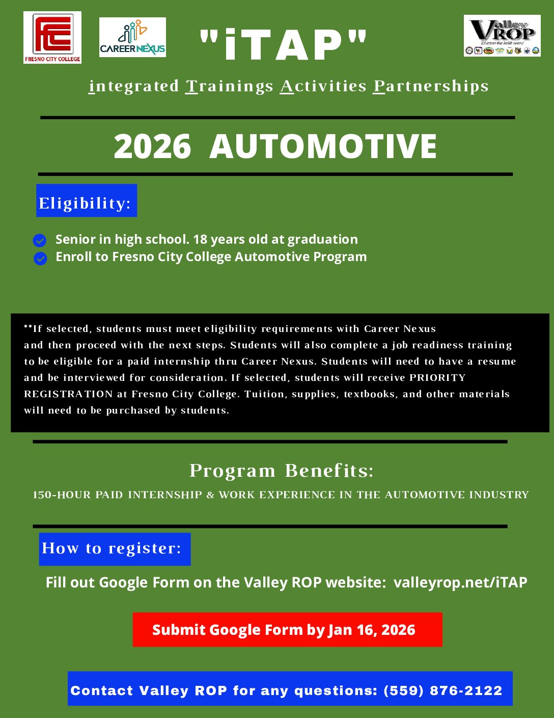Valley ROP’s partnership with Fresno City College and Career Nexus provides career readiness, paid internships and priority registration at Fresno City College. High school seniors who will commit to attend FCC should apply.